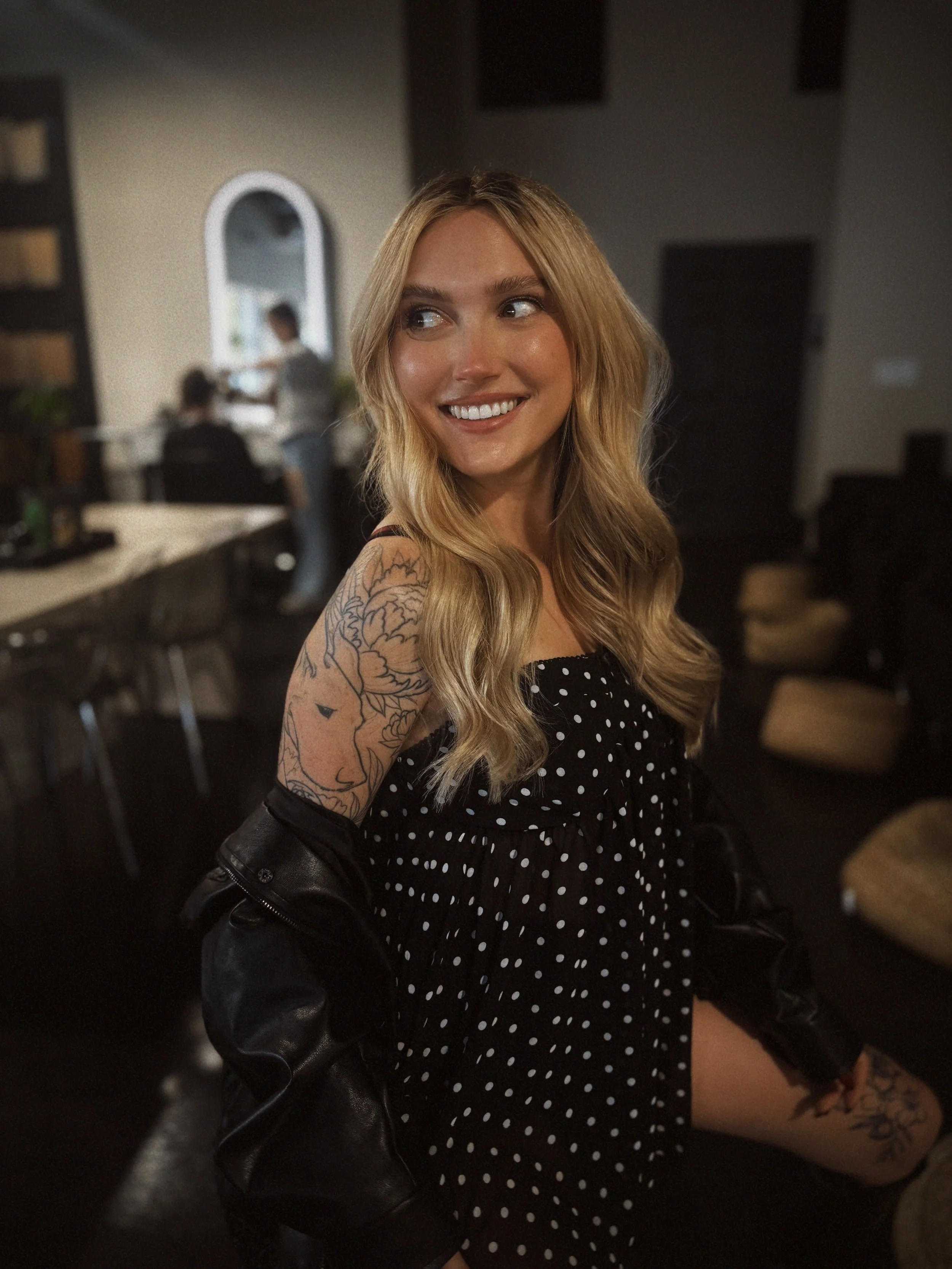 Whether she’s channeling her 2010’s inner scene kid to give you the alternative hair of your dreams, creating soft, blended lived in color and flowy layers, or making your blonde as bright and glamorous as you she loves to custom tailor your hair to you. Whether you’re looking for effortless edge,high effort glamour or something in between she’s your girl.